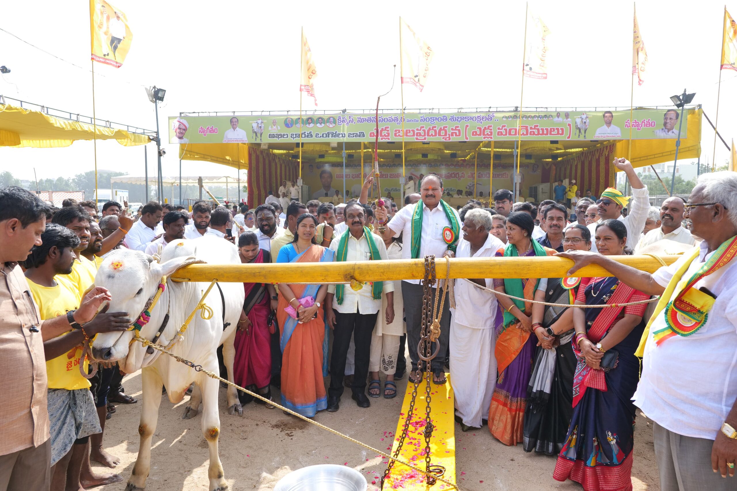 నరసరావు పేట పట్టణంలో కోడెల శివప్రసాద్ క్రీడా ప్రాంగణము నందు జరిగే అఖిలభారత ఒంగోలు జాతి ఎడ్ల పందాలను ప్రారంభించి, బహుమతుల ప్రధానోత్సవం చేసిన సత్తెనపల్లి నియోజకవర్గ శాసనసభ్యులు. కన్నా లక్ష్మీనారాయణ నరసరావుపేట శాసన సభ్యులు శ్రీ చదలవాడ అరవింద్ బాబు.