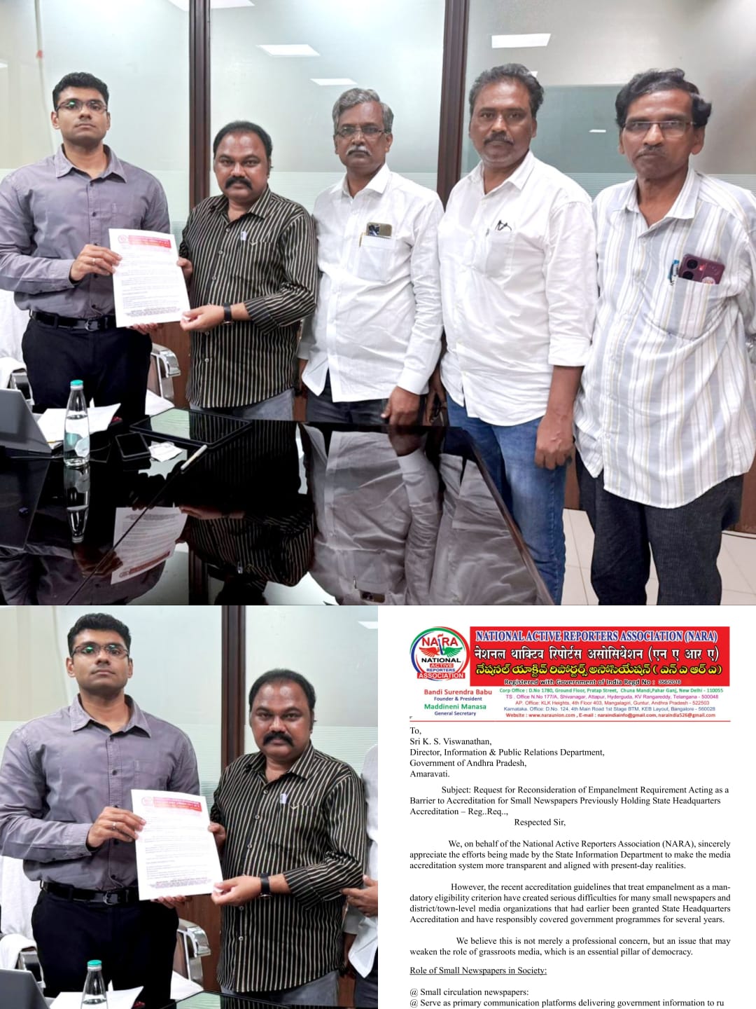NARA ప్రతినిధుల వినతిని స్వీకరించిన సమాచార శాఖ డైరెక్టర్ జిల్లాల స్థాయి సమస్యల పరిష్కారానికి చర్యలు తీసుకుంటామని హామీ …